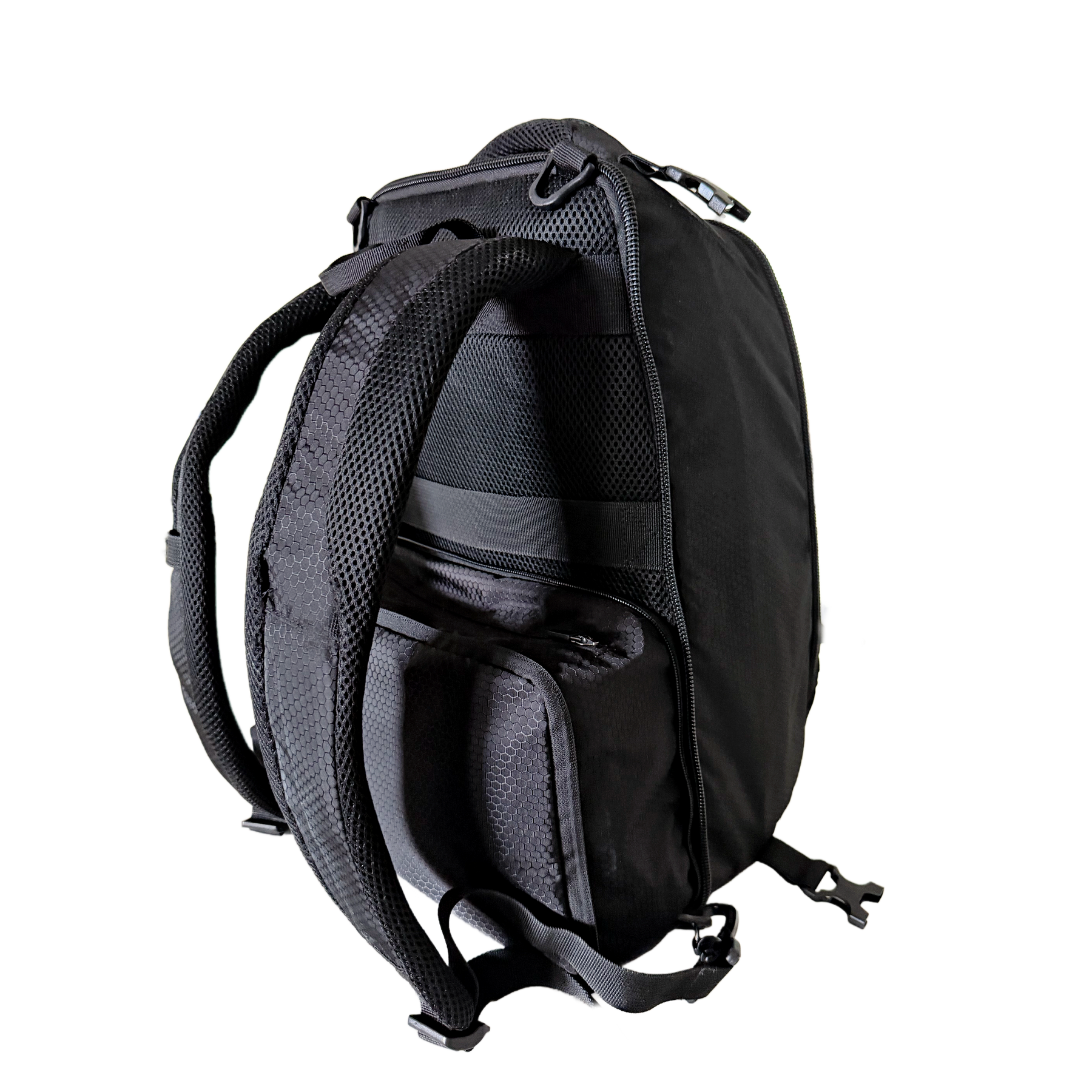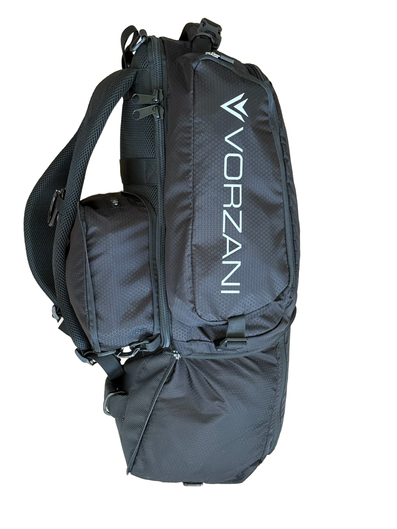 The Octopode Pack is a combination of one backpack, one duffel bag, and two side daypack compartments.   The pack can be configured as one backpack (with the duffel bag zipping onto the backpack and the side daypacks connecting on either side with hidden magnets and top and bottom clips).   This bag adapts to your needs on the court or on the road.  Both the backpack and duffle bag are designed to accept the Coach's Caddy/InstaCloset in their main compartments (Not Included).